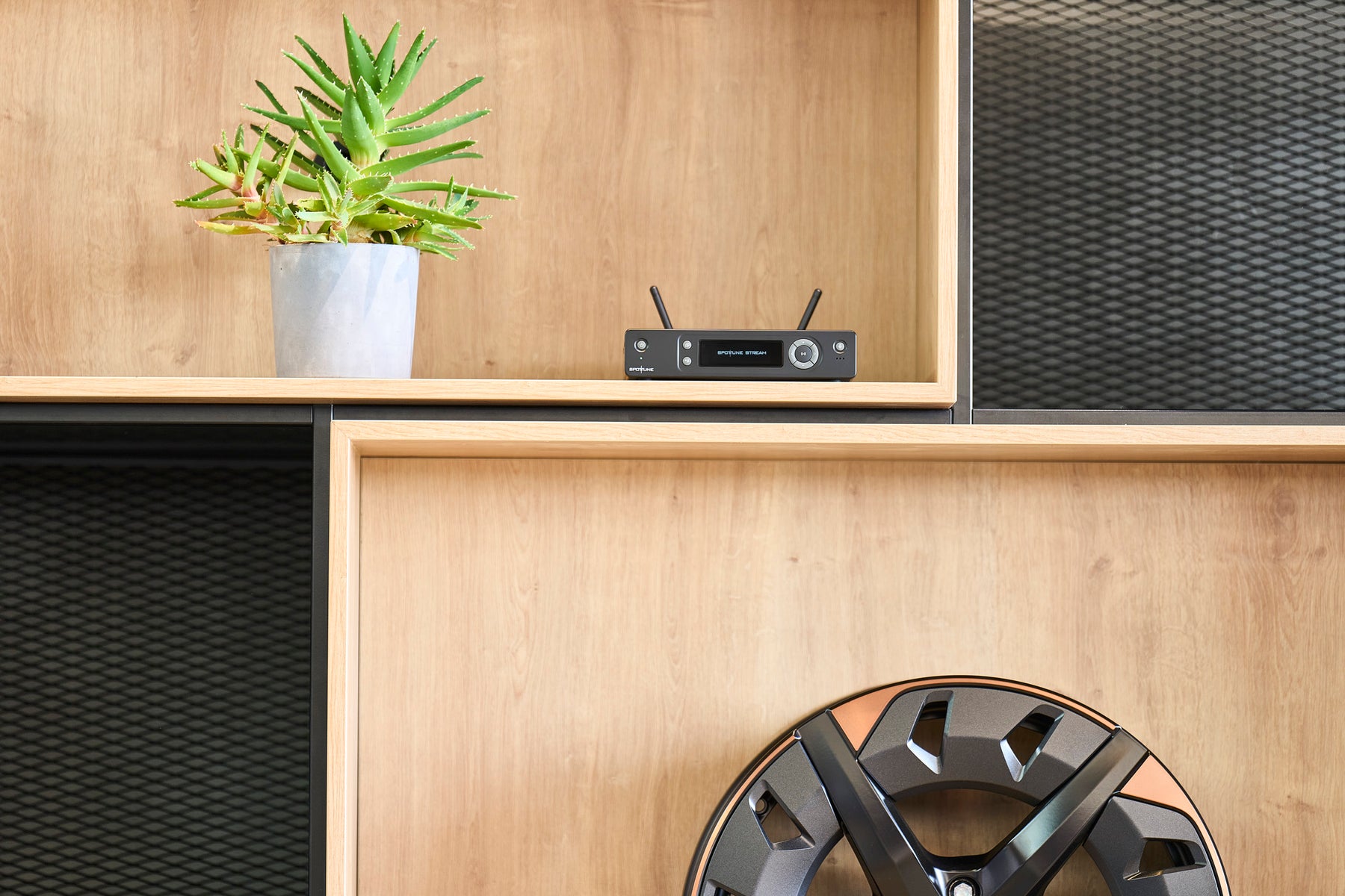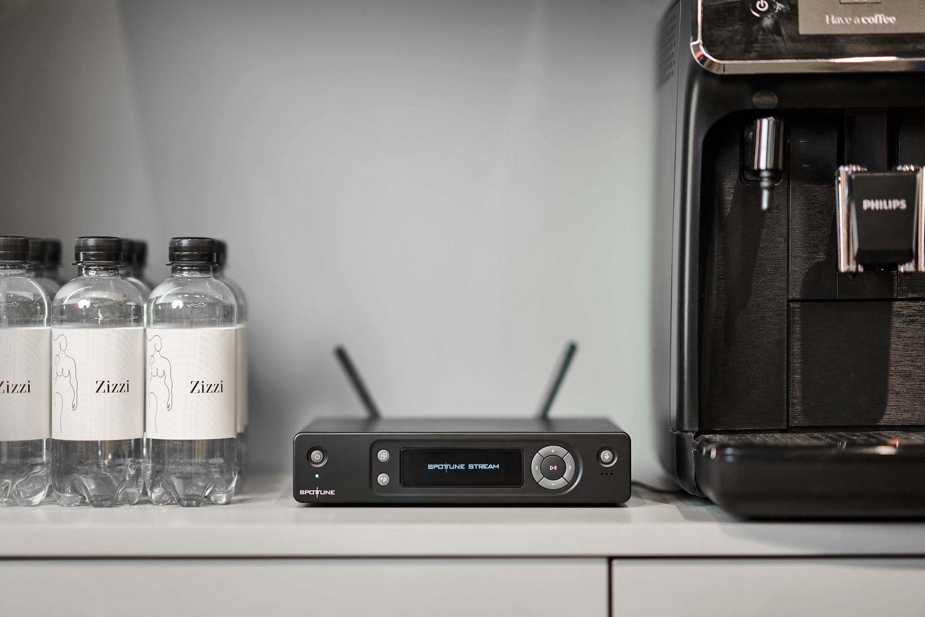 Spottune Stream S1 es la unidad de transmisión central e inalámbrica de tu sistema Spottune. Stream S1, se comunica con todos tus altavoces OMNI y SUB conectados y controla el contenido de audio y música de tu negocio.